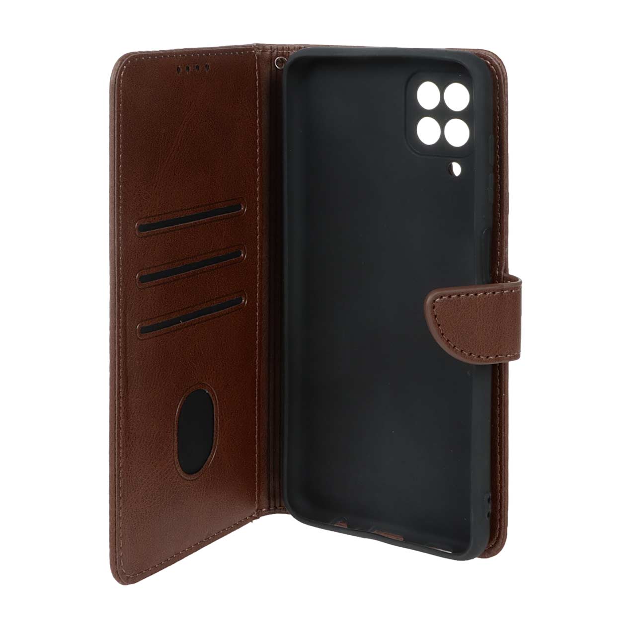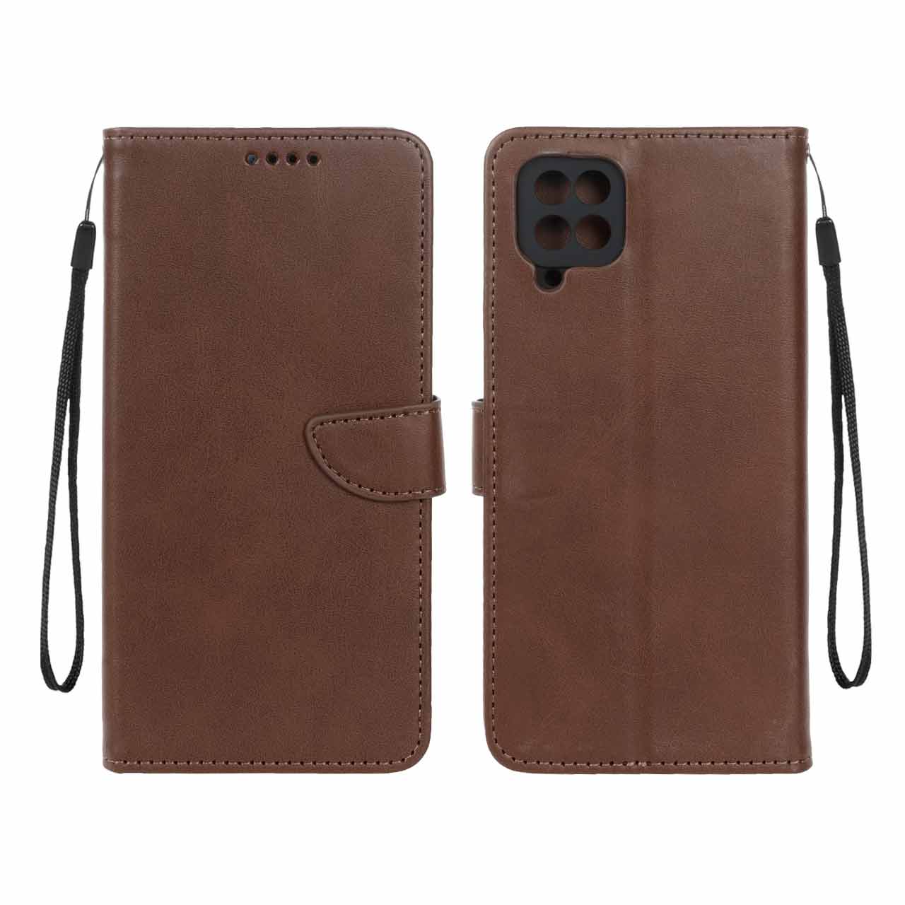 کیف چرمی موبایل مگنتی محافظ لنزدار Samsung Galaxy A12 / M12 / F12 - قهوه ای