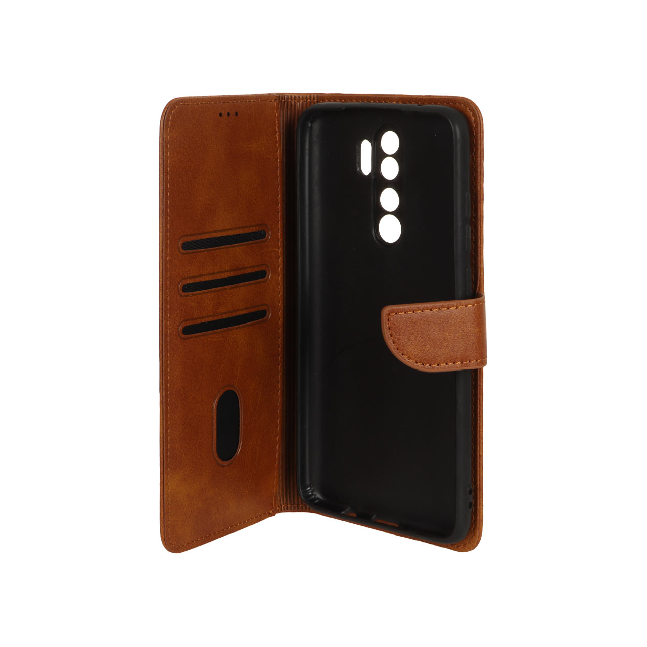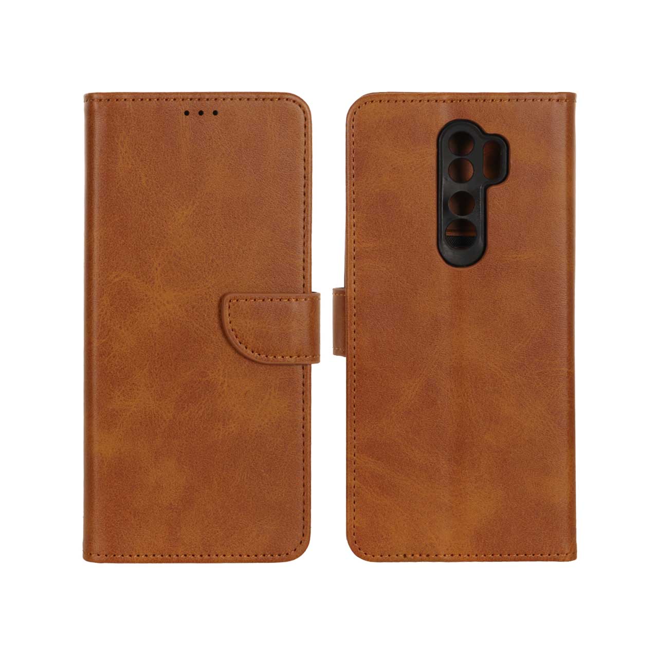 کیف چرمی موبایل مگنتی محافظ لنزدار Xiaomi Redmi Note 8 Pro - عسلی