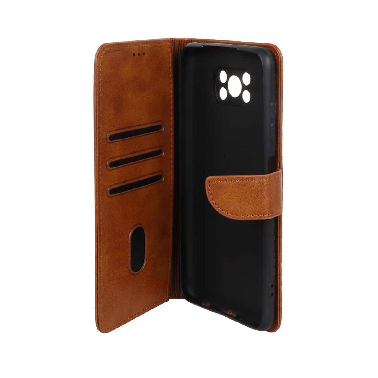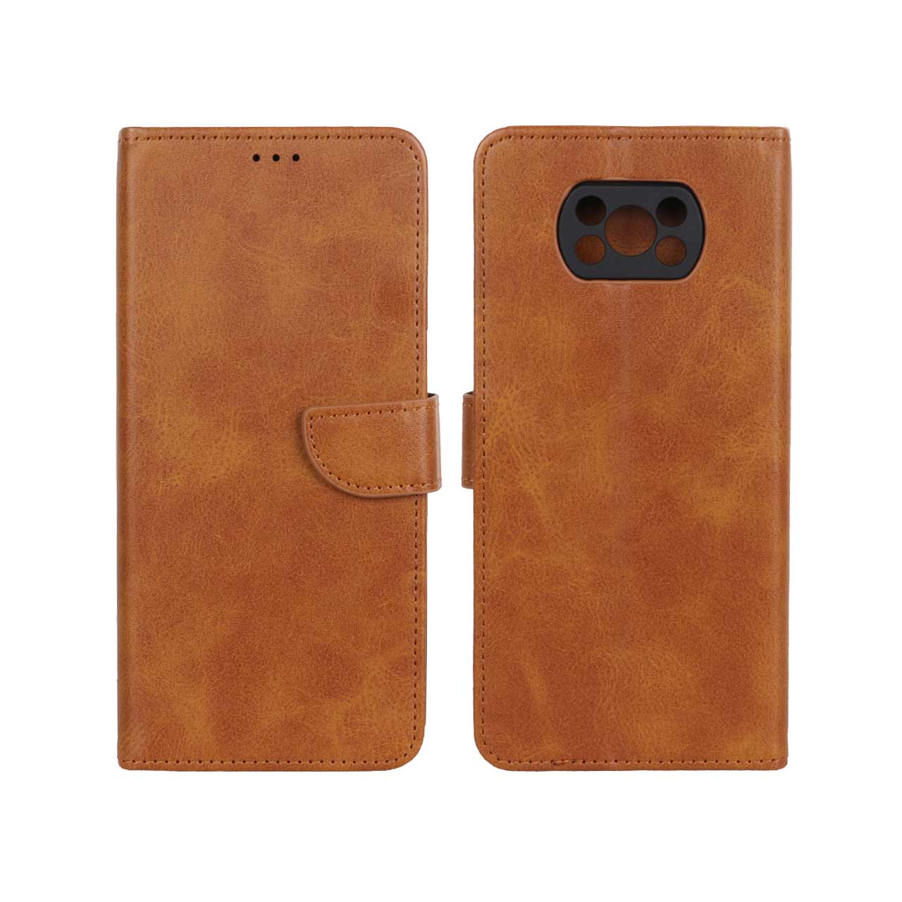کیف چرمی موبایل مگنتی محافظ لنزدار Xiaomi Poco X3 / Poco X3 Pro / Poco X3 NFC - عسلی