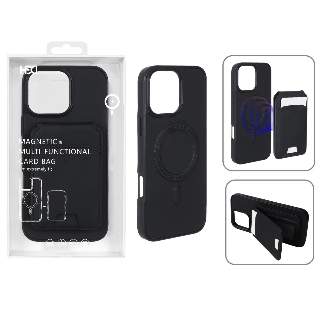 قاب اورجینال HDD چرمی Magsafe با ست جاکارتی مگنتی Apple iPhone 16 Pro Max - مشکی (پک دار)