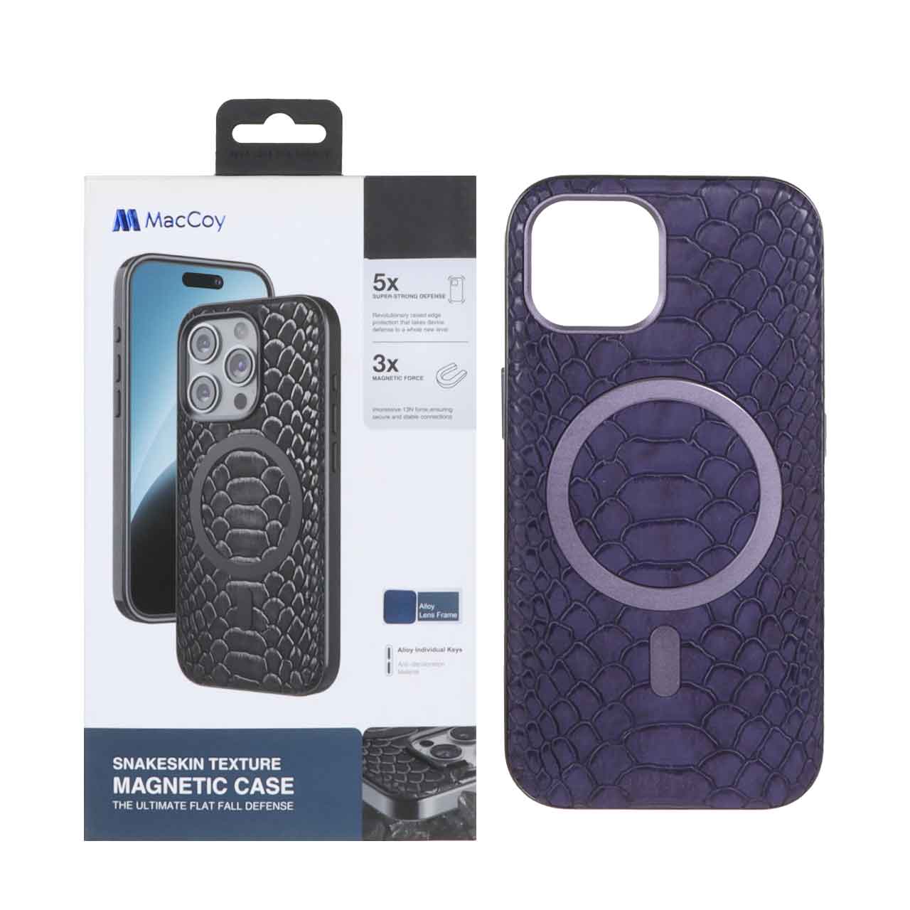 قاب اورجینال MacCoy چرمی پوست ماری MagSafe مدل Apple iPhone 15 / iPhone 14 / iPhone 13 - بنفش (پک دار)