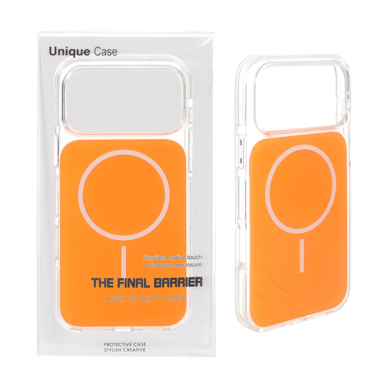 قاب اورجینال Unique Case دور شفاف MagSafe مدل Apple iPhone 17 Pro Max - نارنجی (پک دار)