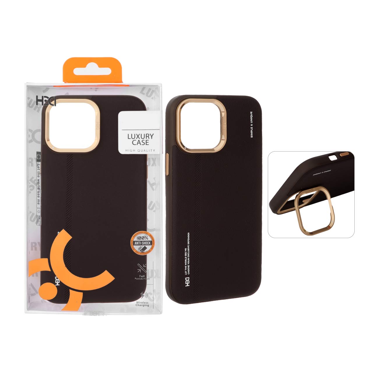 قاب اورجینال HDD طرح کربن محافظ لنز فلزی استندشو Apple iPhone 13 Pro Max - قهوه ای تیره (پک دار)