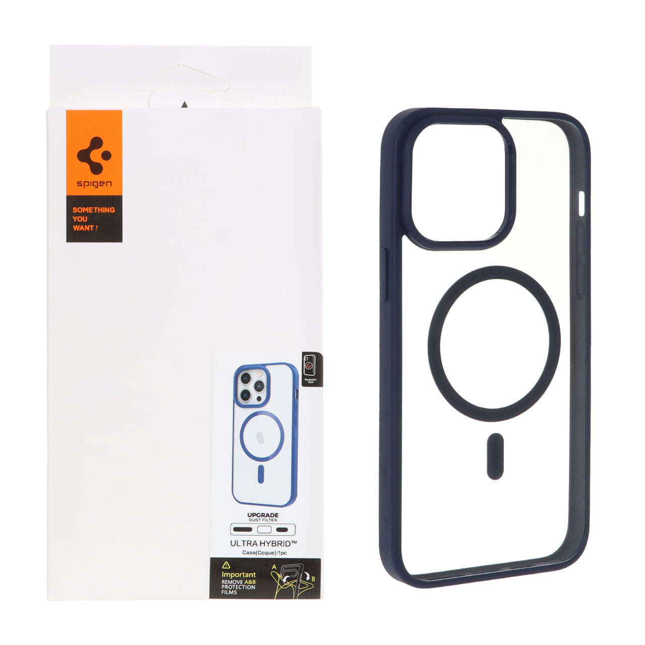 قاب اورجینال Magsafe Spigen با توری اسپیکر فلزی Apple iPhone 14 Pro Max - سرمه ای (پک دار)