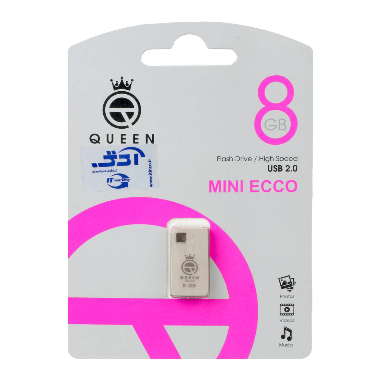 Queen Mini Ecco USB2.0 Flash Memory-8GB نقره ای (گارانتی مادام العمر شرکت آی تین)