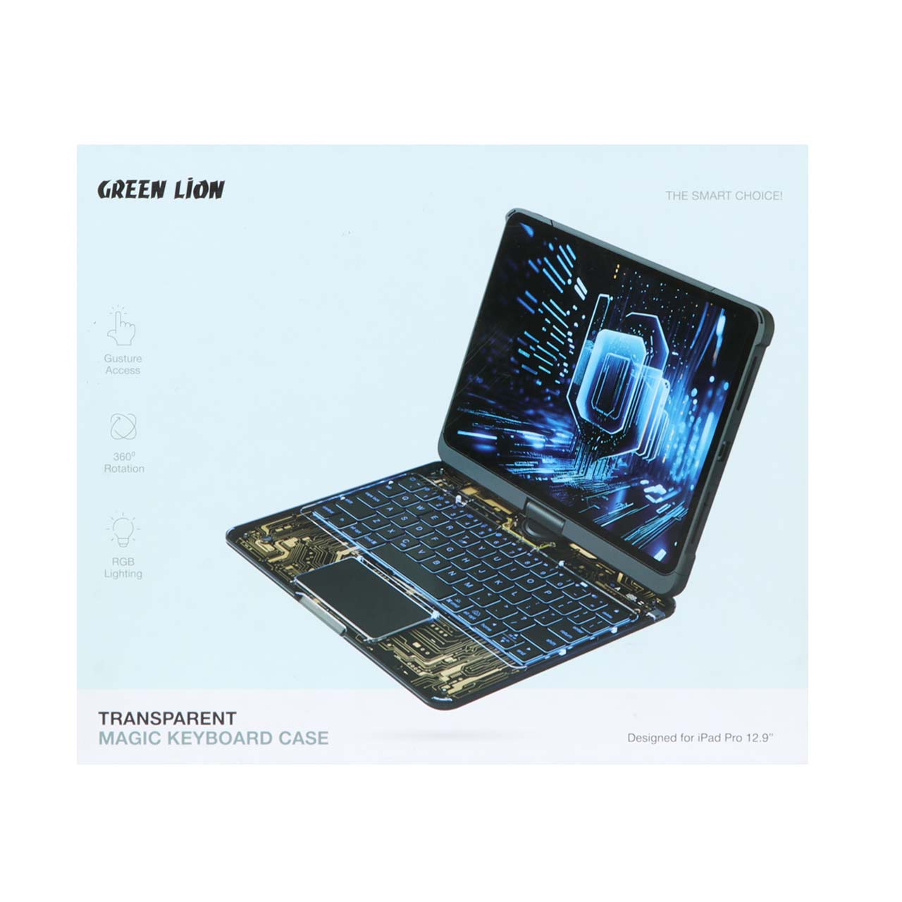 کیبورد بی سیم Green Lion مدل Transparent Magic Keyboar Case GNTRMGKY129BK مناسب برای آی پد پرو سایز 12.9 اینچی - مشکی (گارانتی 24 ماهه ایویز)