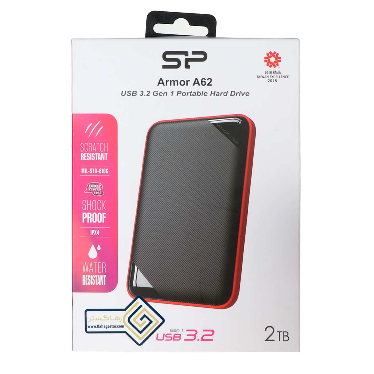 هارد اکسترنال Silicon Power USB3.2 مدل Armor A62 ظرفیت 2TB - مشکی قرمز (گارانتی GSM سرویس رهاگستر)