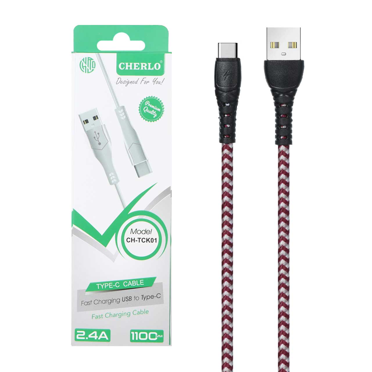 کابل شارژ 1.1 متری فست CHERLO Type-C مدل CH-TCK01 - سفید قرمز - SMO