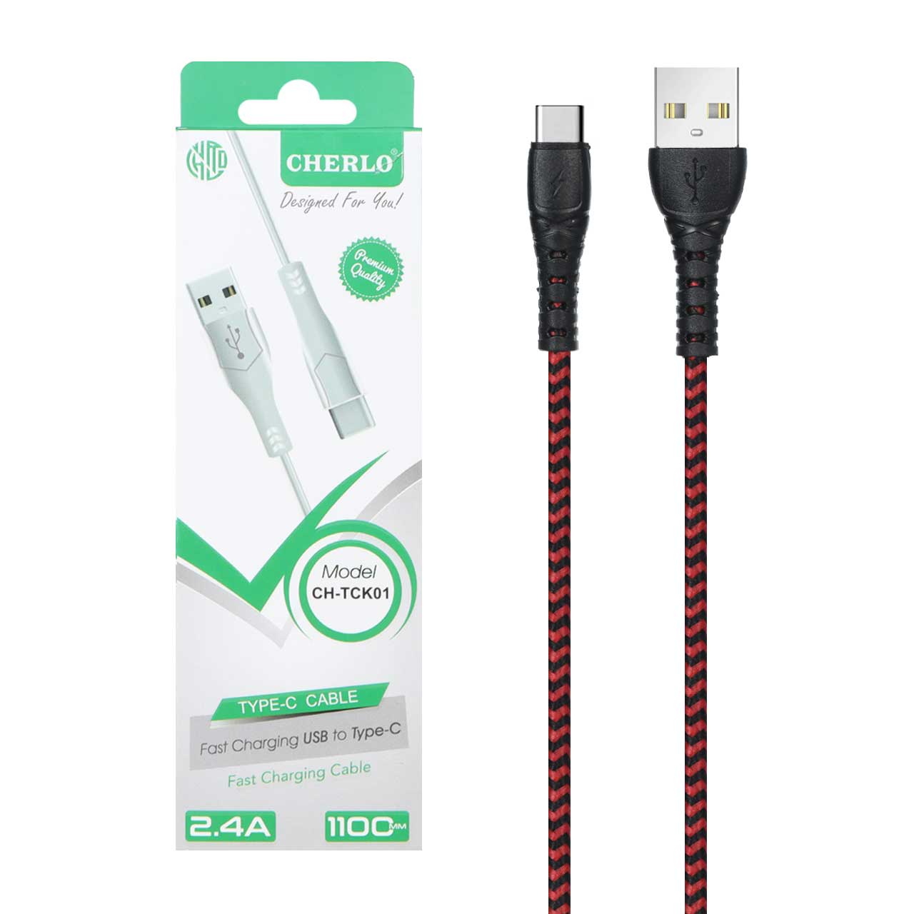کابل شارژ 1.1 متری فست CHERLO Type-C مدل CH-TCK01 - مشکی قرمز - SMO