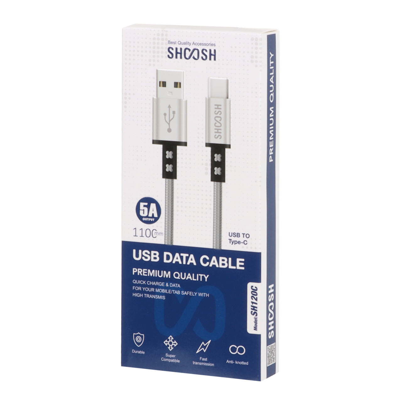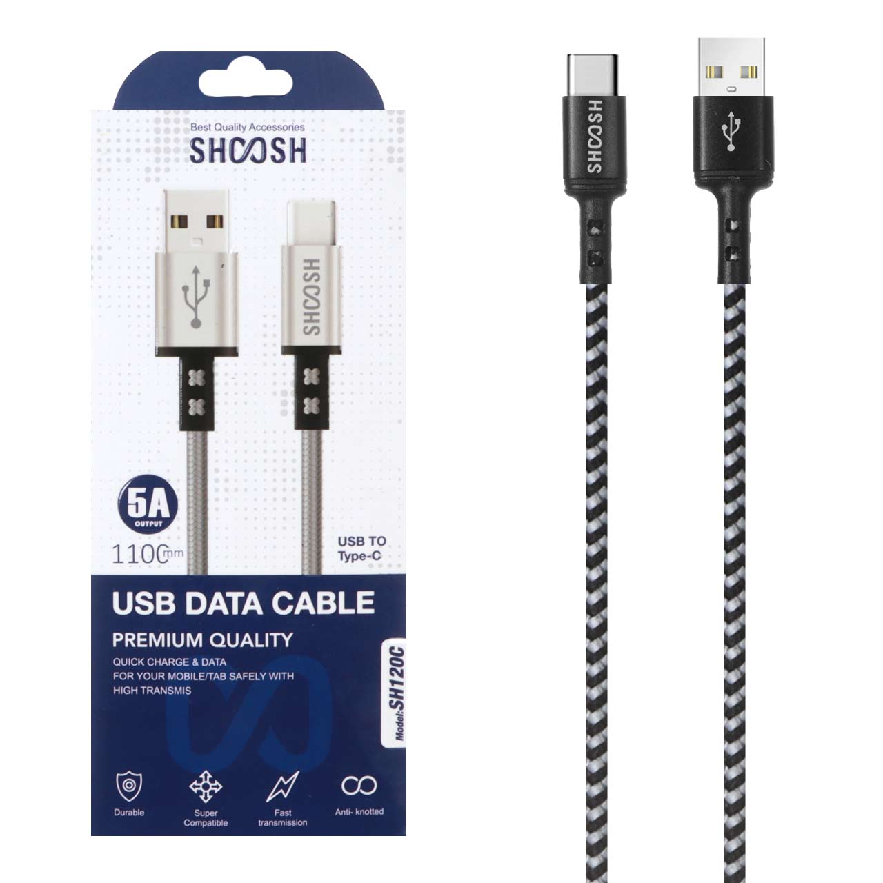 کابل شارژ کنفی 1.1 متری فست Shoosh Type-C مدل SH120C - مشکی نقره ای - SMO