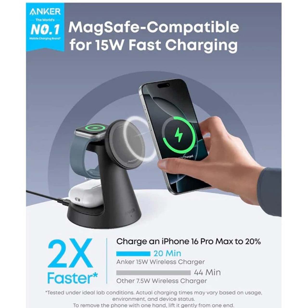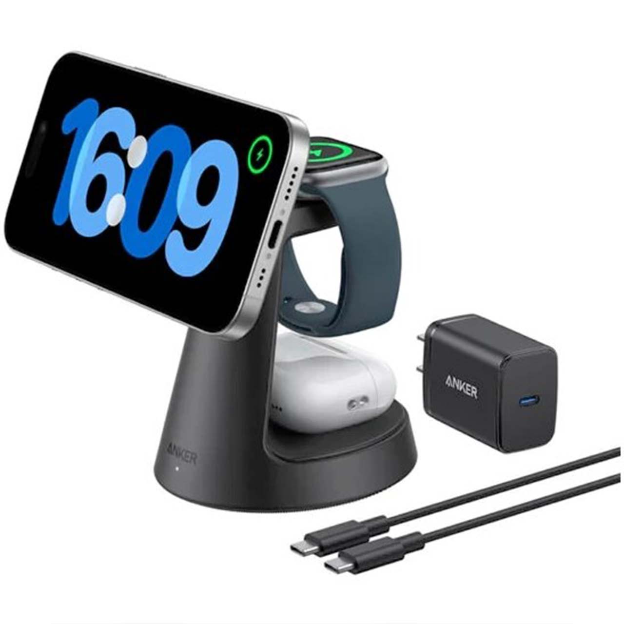 شارژر وایرلس 3 کاره ANKER مدل MagGo Wireless Charging Station B25M4V11 - مشکی (گارانتی 18ماهه حافظه طلایی ایستا)