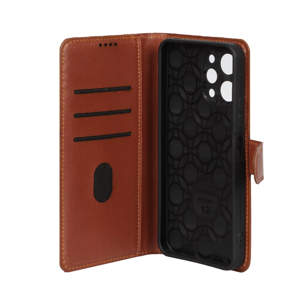 کیف موبایل چرمی مگنتی محافظ لنزدار Xiaomi Redmi 12 / Poco M6 Pro 5G - قهوه ای