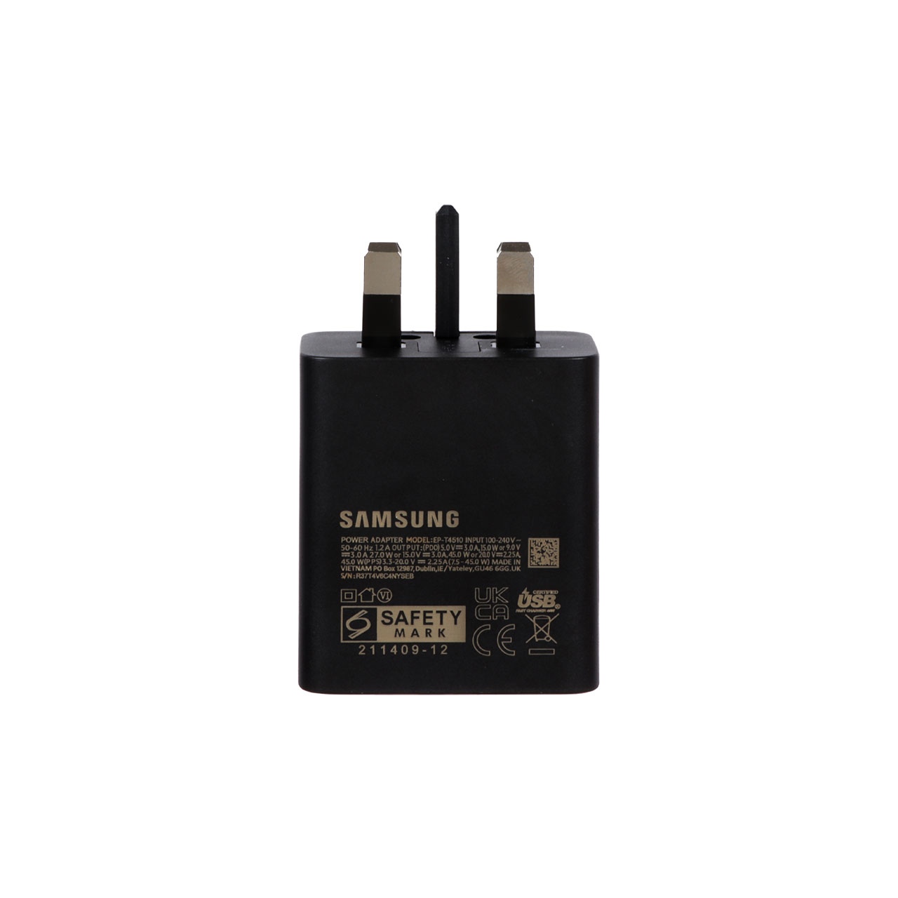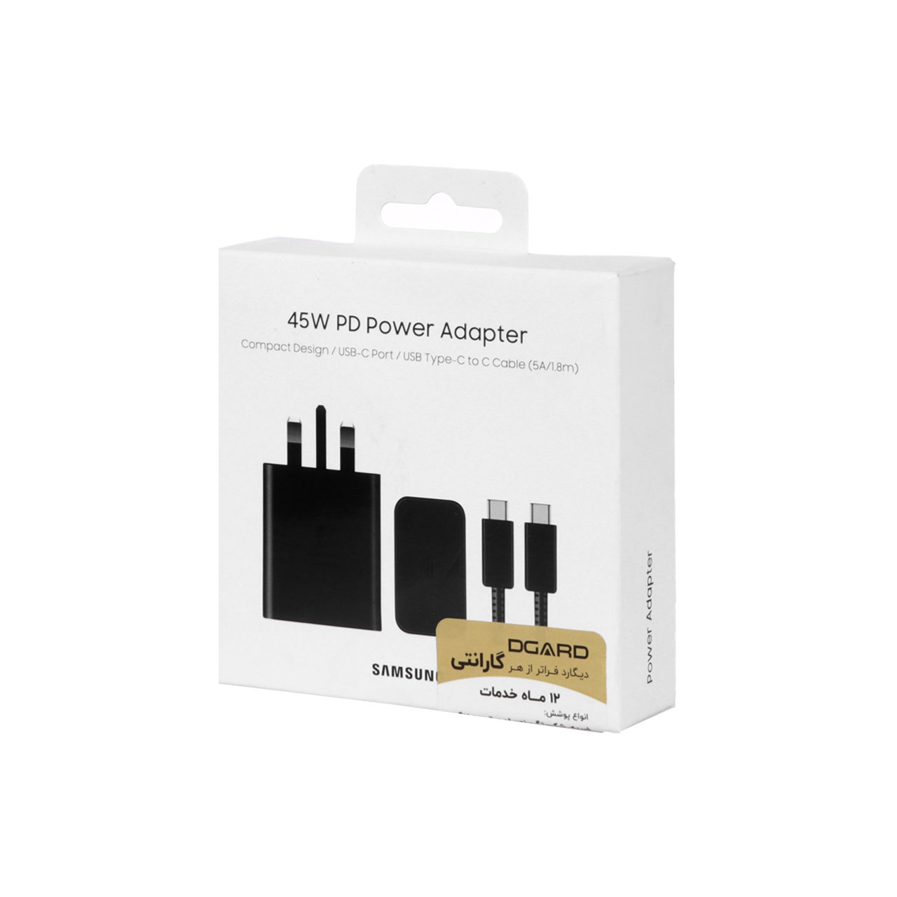 شارژر دیواری سه پین فست و PD تک پورت SAMSUNG Type-C مدل EP-T4510 45W به همراه کابل شارژ Type-C - مشکی درجه یک (6 ماهه DST + بیمه نامه 12 ماهه DGARD) مجهز به فناوری NFC
