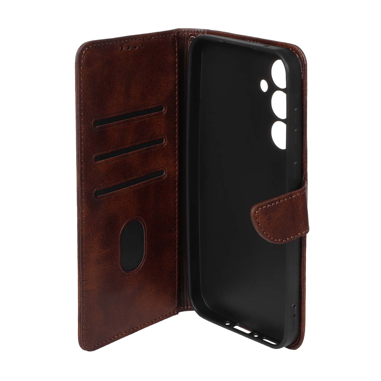 کیف چرمی موبایل مگنتی محافظ لنزدار Samsung Galaxy A35 - قهوه ای