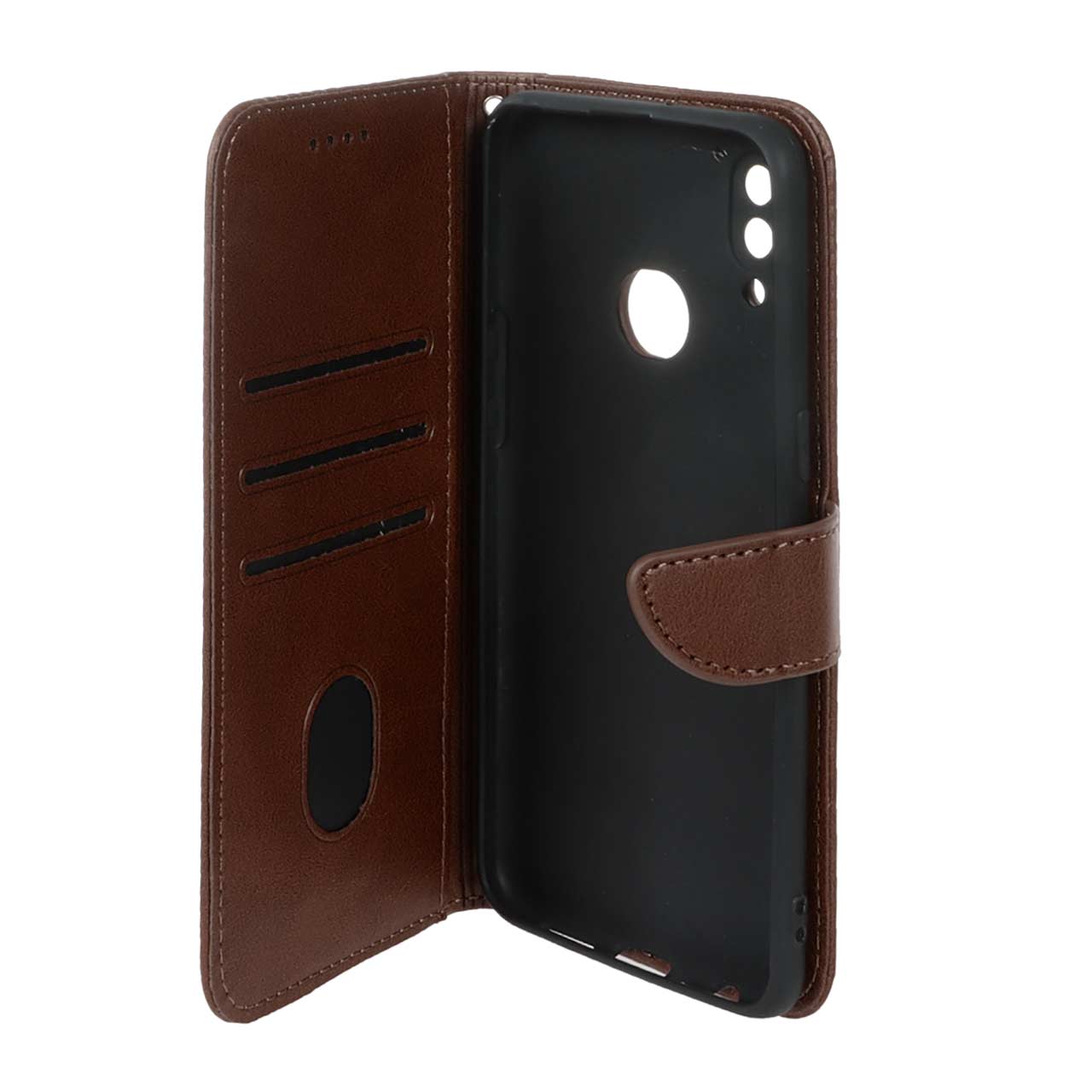 کیف چرمی موبایل مگنتی محافظ لنزدار Samsung Galaxy A10s - قهوه ای