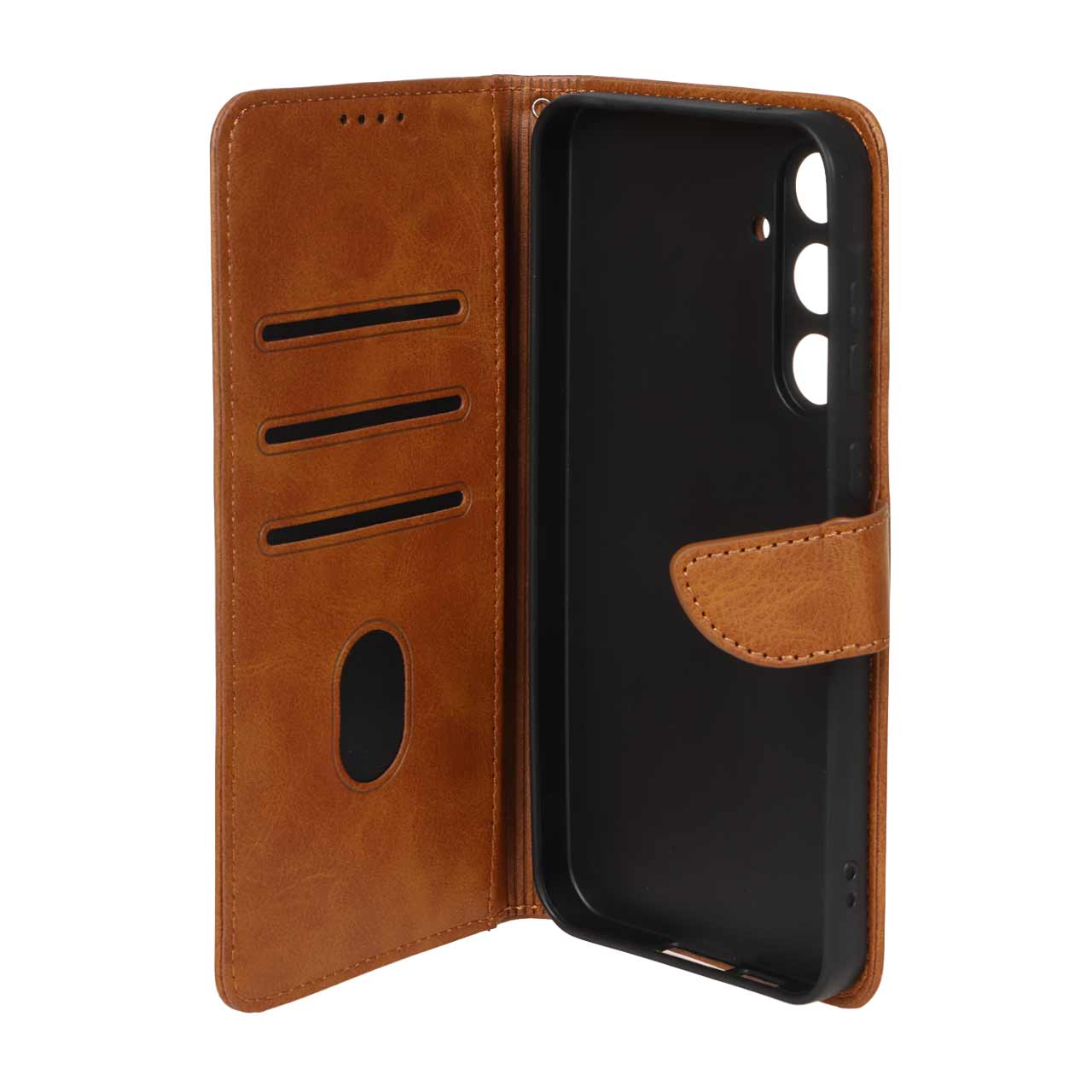 کیف چرمی موبایل مگنتی محافظ لنزدار Samsung Galaxy A55 - عسلی