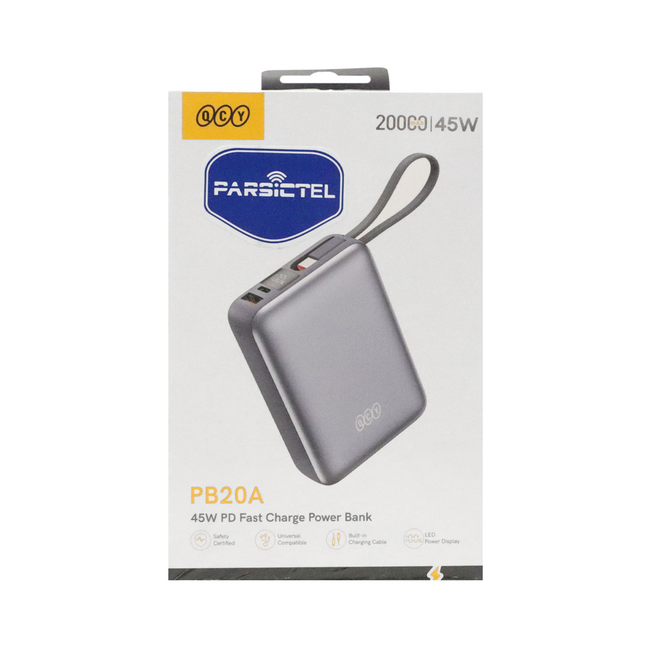 پاوربانک PD و فست شارژ QCY 20000mAh مدل PB20A 45W - خاکستری (گارانتی 18 ماهه شرکتی)