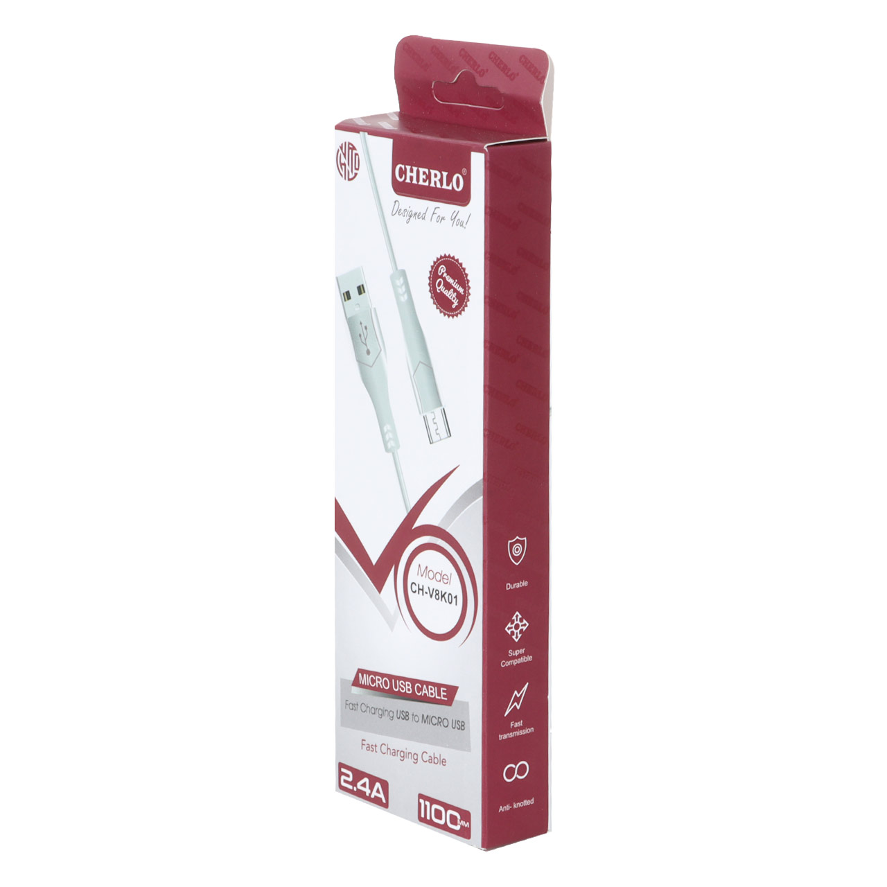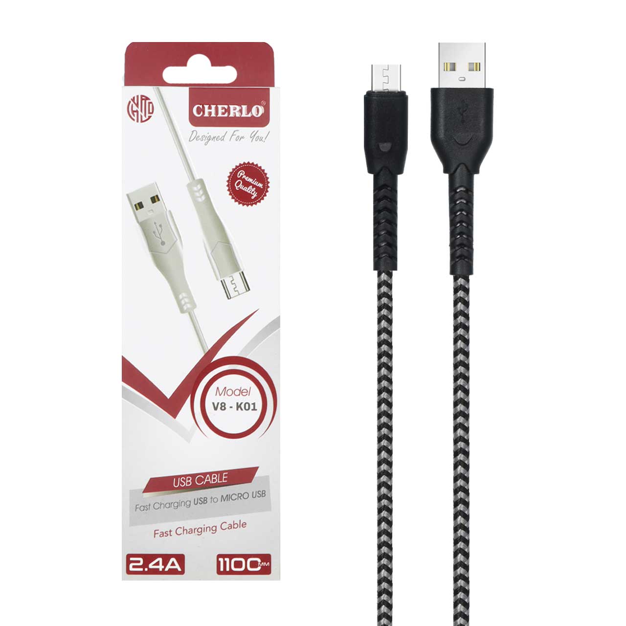 کابل شارژ 1.1 متری فست اندروید CHERLO مدل V8-K01 - مشکی سفید - SMO