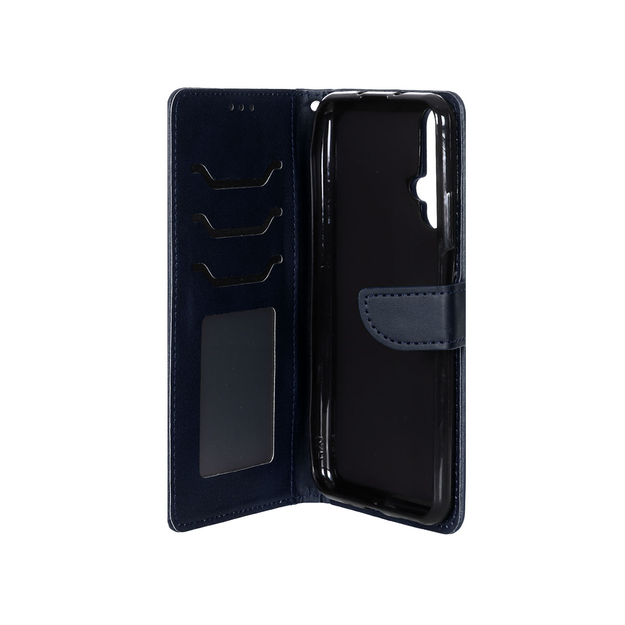 کیف چرمی موبایل مگنتی محافظ لنزدار Huawei Nova 5T / Honor 20 - سرمه ای