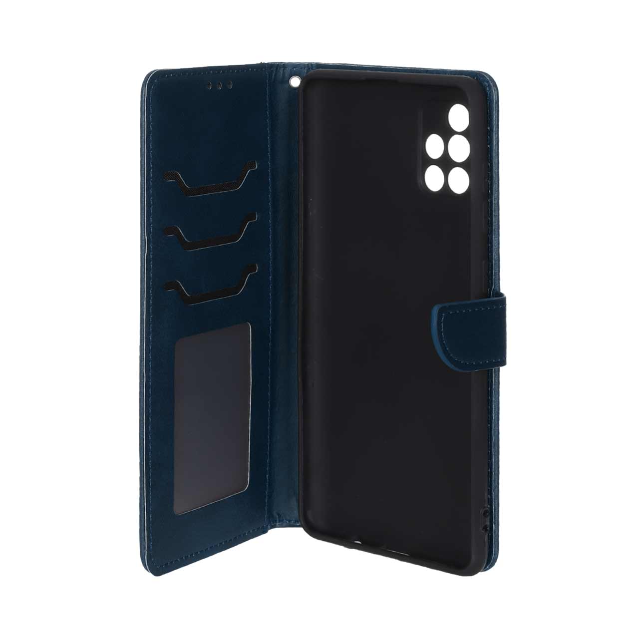 کیف چرمی موبایل مگنتی محافظ لنزدار Samsung Galaxy A71 - سرمه ای