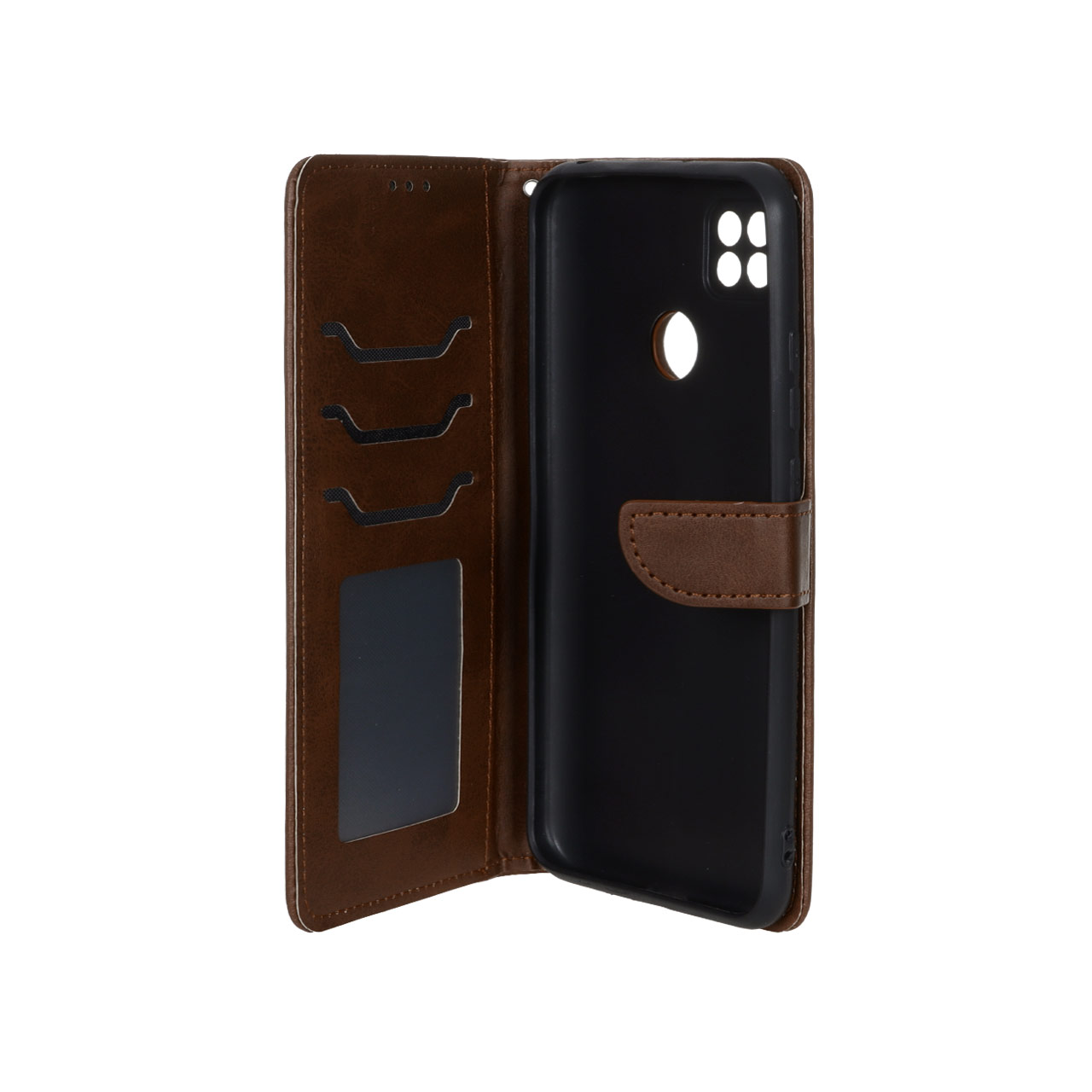 کیف چرمی موبایل مگنتی محافظ لنزدار Xiaomi Redmi 10A / Redmi 9C / Poco C31 - قهوه ای