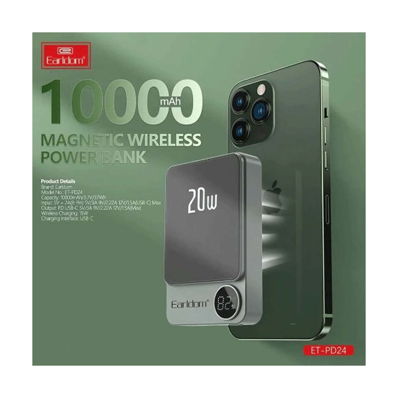پاوربانک PD و فست شارژ Earldom 10000mAh مدل PD24 20W - مشکی