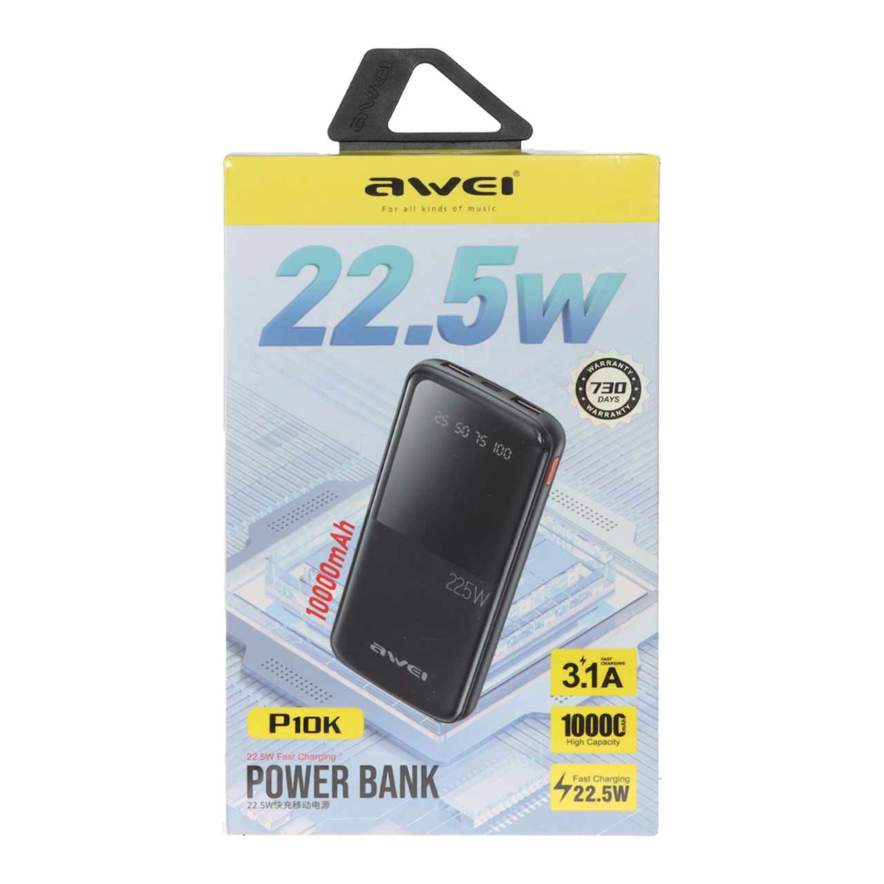 پاوربانک Awei 10000mAh مدل P10K 22.5W - مشکی - RYL