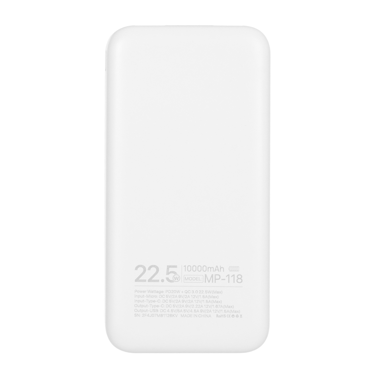 پاوربانک (PD و فست شارژ) Miller 22.5W 10000mAh مدل MP-118 - سفید (گارانتی پارتیان پایا)